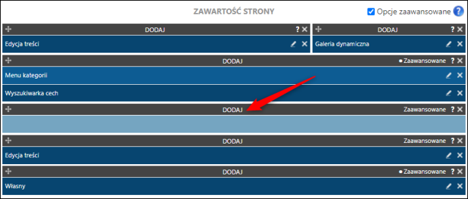 W sekcji Zawartość strony dodać widget Dodatkowe informacje.