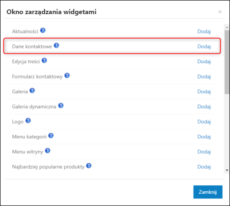 Jak dodać i zdefiniować widget Dane kontaktowe w vendero?