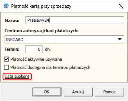 Subiekt GT – Jak dodać subkonto w formie płatności kartą przy sprzedaży?