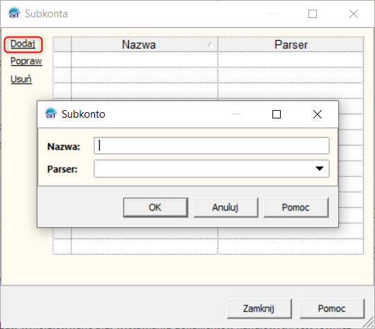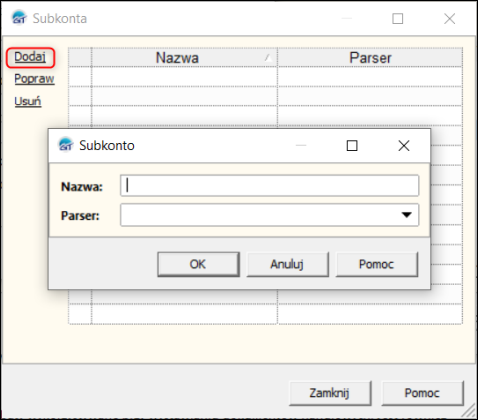 3. Wprowadzić subkonto klikając Dodaj i zatwierdzić przyciskiem OK.