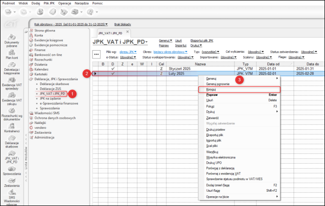 Program umożliwia dwa sposoby tworzenia korekt dla plików JPK_V7M/JPK_V7K. Są to: