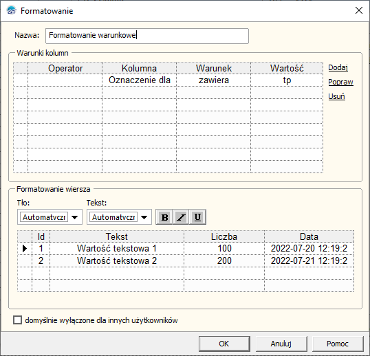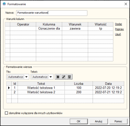 5. W sekcji Formatowanie wiersza wprowadzić sposób wyróżnienia i zatwierdzić OK.
