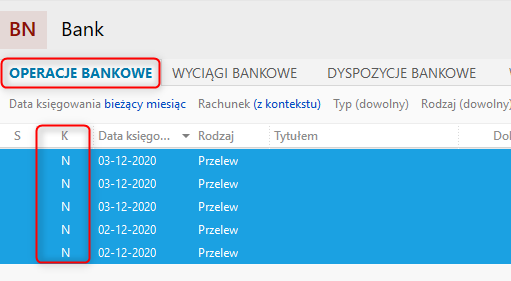 4. Po wykonaniu operacji w kolumnie K powinny znajdować się poniższe statusy (N).