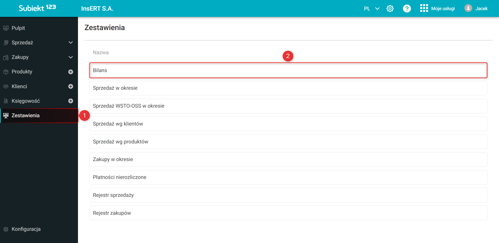 Subiekt 123 – Jak wyliczyć zestawienie Bilans?