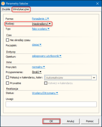 2. W oknie, które się wyświetli przejść na zakładkę Windykacyjne i wybrać domyślny Rodzaj. Zmiany zapisać przyciskiem OK.