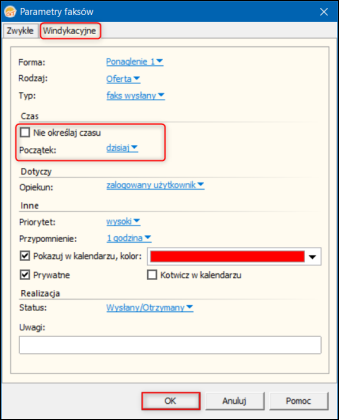 2. W oknie, które się wyświetli przejść na zakładkę Windykacyjne i ustawić domyślne parametry w sekcji Czas. Zmiany zapisać przyciskiem OK.