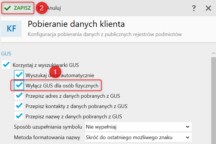 Subiekt nexo – Jak wyłączyć pobieranie danych z wyszukiwarki GUS dla osób fizycznych?