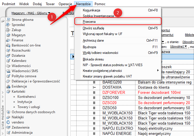 1. Z górnego menu programu wybrać opcję Narzędzia – Przecena.