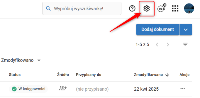 1. Przejść do Ustawień aplikacji klikając ikonę koła zębatego.