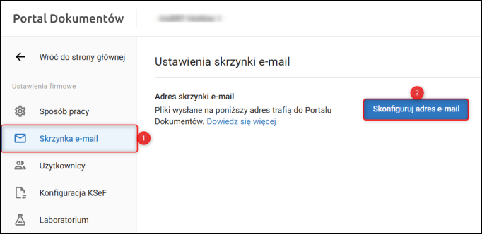 2. W module Skrzynka e-mail kliknąć Skonfiguruj adres e-mail.