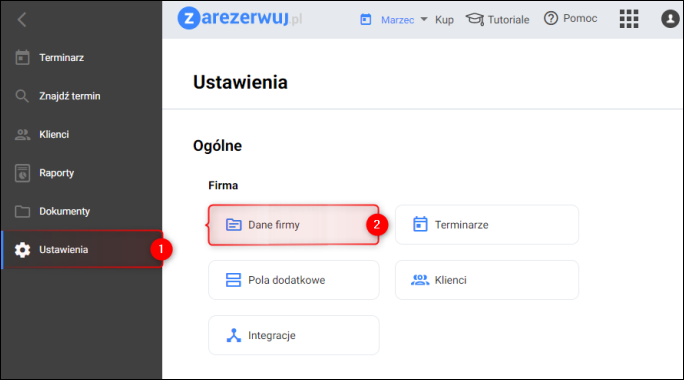 Po aktywacji aplikacji zarezerwuj.pl, użytkownik powinien w kreatorze wdrożeniowym uzupełnić dane firmy​.