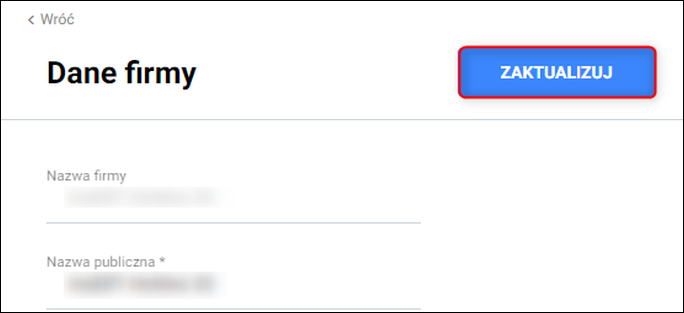 Zmiany danych firmy zatwierdzić przyciskiem Zaktualizuj.