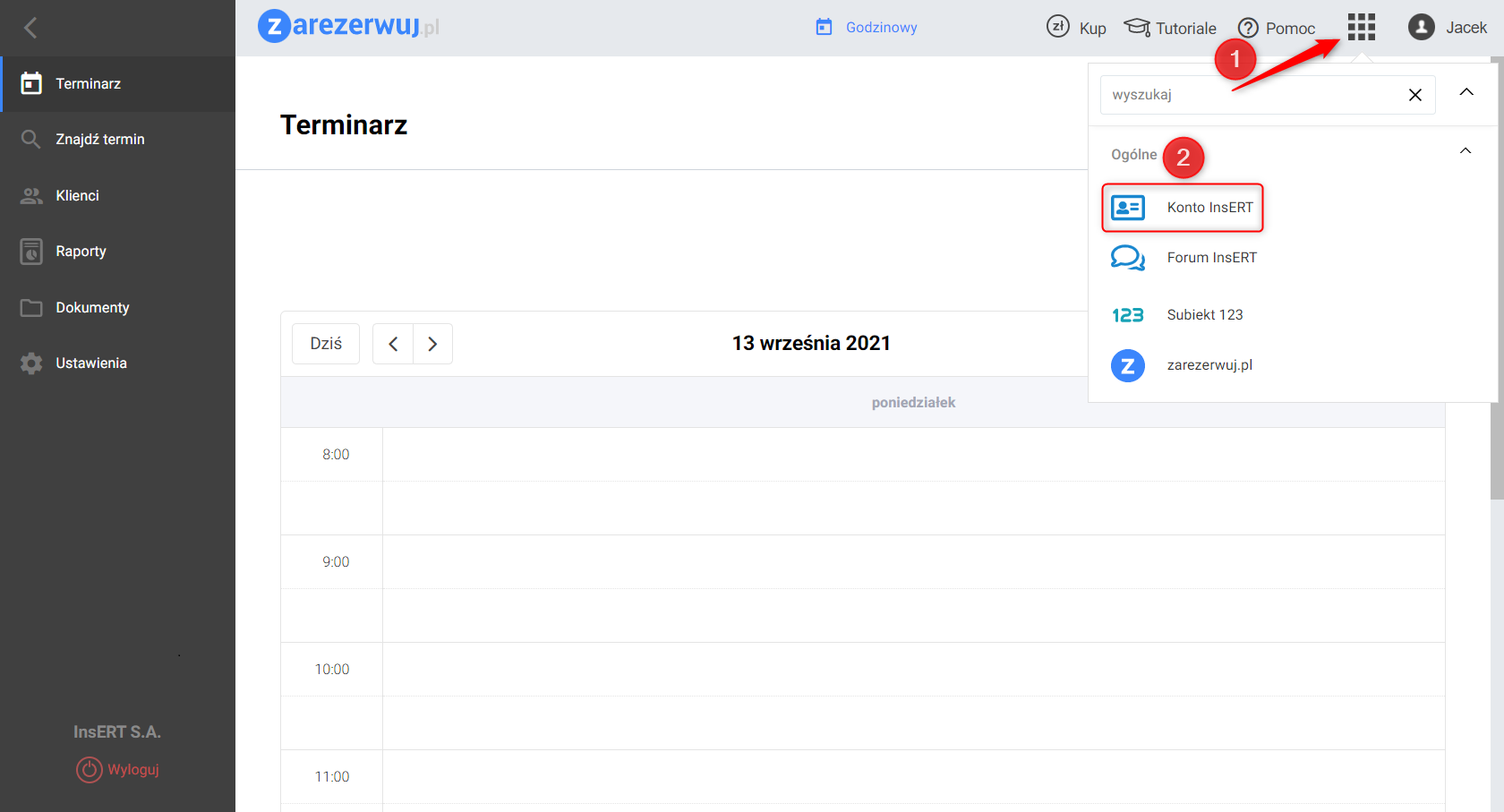 Aby dodać nowego użytkownika, należy przejść do konta InsERT - można to zrobić z poziomu aplikacji rozwijając menu Moje usługi.