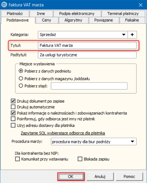 Subiekt GT – Jak ustawić domyślny tytuł faktury VAT marża?