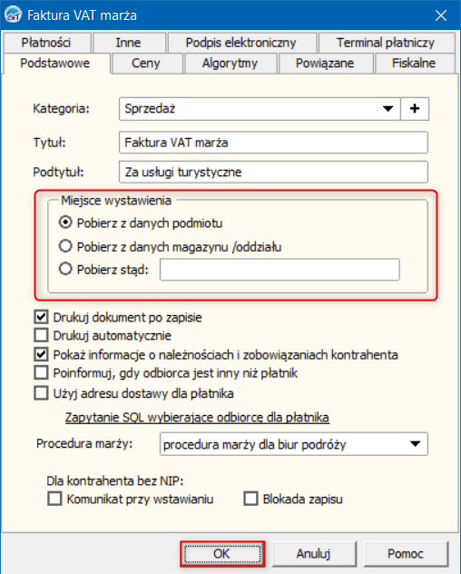 Subiekt GT – Jak ustawić domyślne miejsce wystawienia faktury VAT marża?