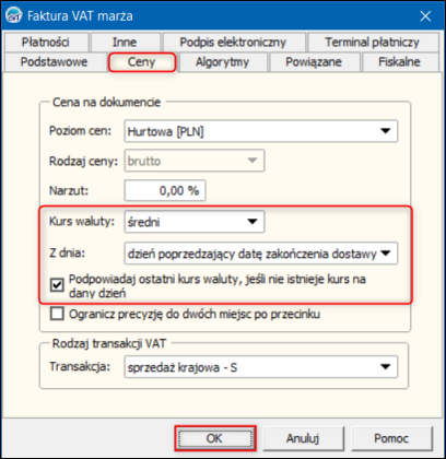 Subiekt GT – Jak wprowadzić domyślne ustawienia kursów walut dla faktury VAT marża?