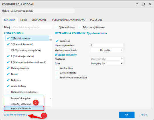 InsERT nexo – Jak importować listę kolumn wraz z ich konfiguracją?