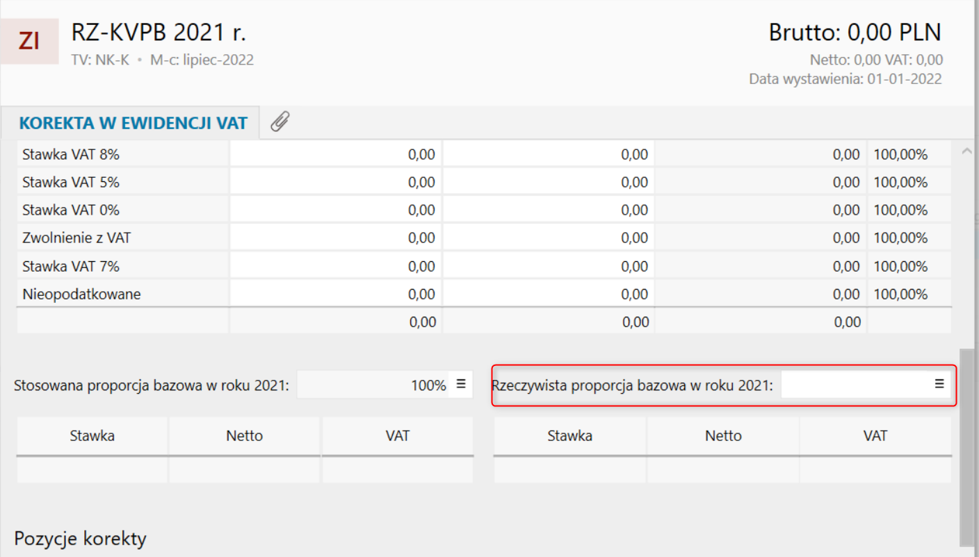 Aby wystawić korektę VAT proporcji bazowej, należy: