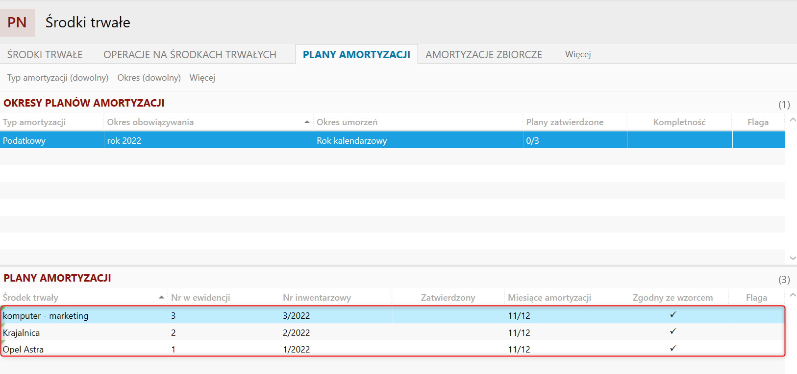 3. Plany amortyzacji środków trwałych zostaną przedstawione w dedykowanej sekcji w dolnej części modułu.