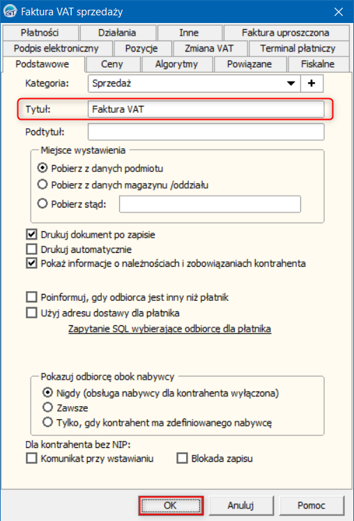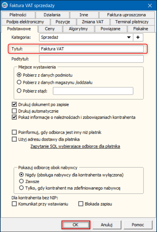 Subiekt GT – Jak ustawić domyślny tytuł faktury VAT sprzedaży?