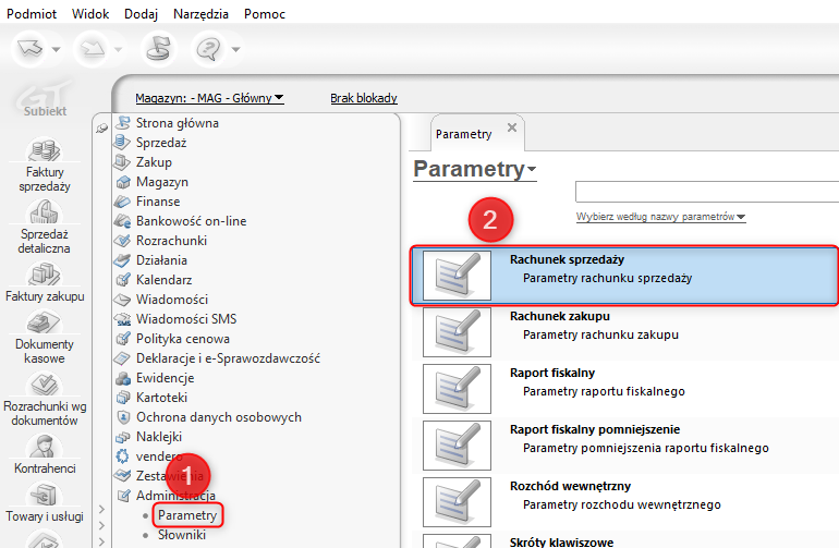 1. Przejść do modułu Administracja – Parametry i wybrać Rachunek sprzedaży.