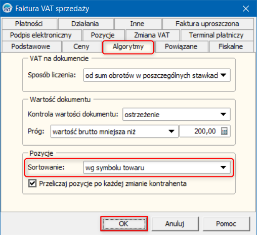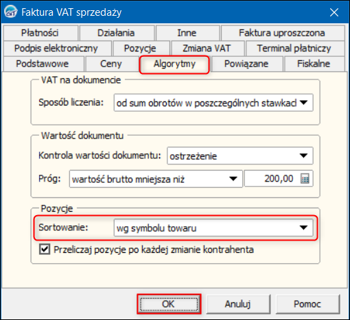 Subiekt GT – Jak ustawić sortowanie pozycji faktury VAT sprzedaży?