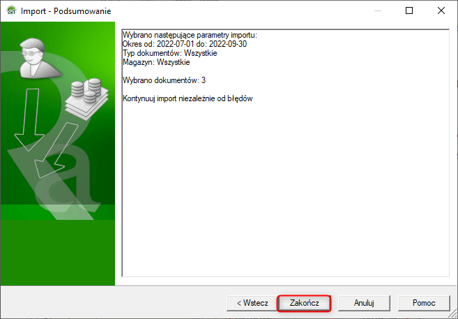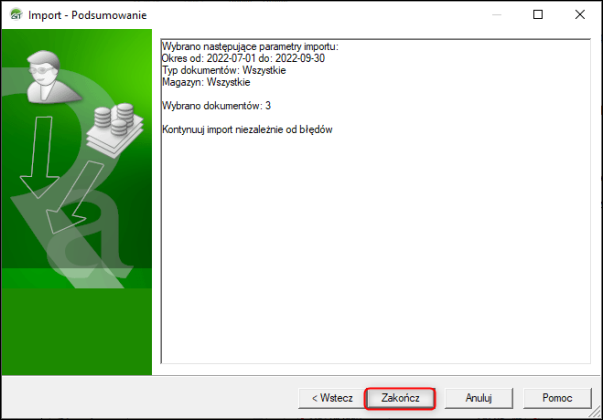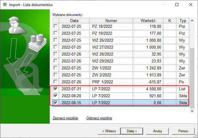 5. Zaznaczyć dokumenty, które mają zostać zaimportowane do programu księgowego i kliknąć Dalej.