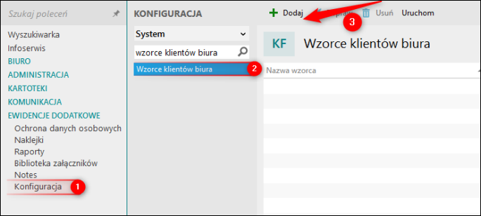 1. Przejść do modułu Konfiguracja – Wzorce klientów biura.