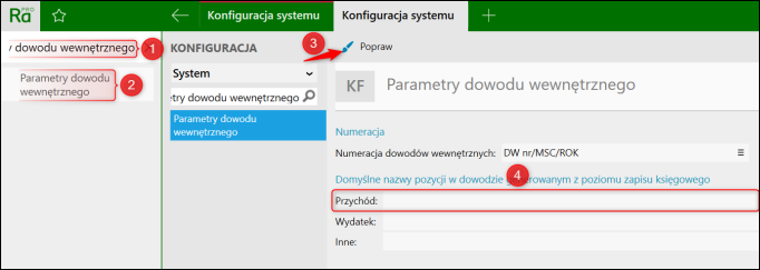 Rachmistrz i Rewizor nexo – Jak dodać domyślną nazwę dla przychodu dowodu wewnętrznego?