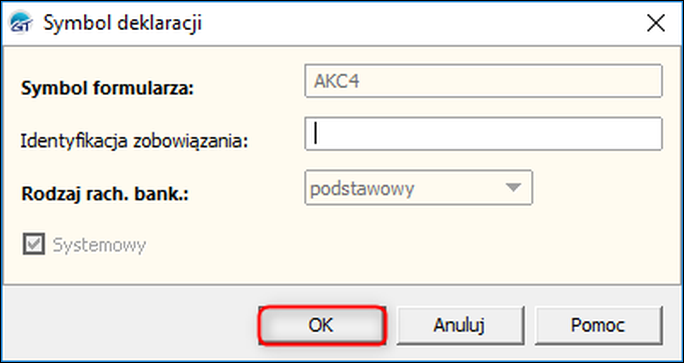 identyfikację zobowiązania (np. TYT.WYK.POD.DOCH, TYT.WYK.POD.OD.TOWAR.),