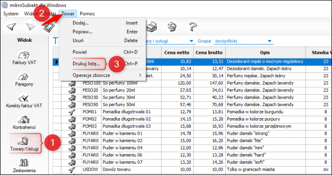 mikroSubiekt – Jak wydrukować listę z wszystkimi towarami?