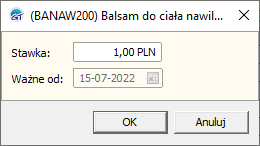3. Wskazać stawkę opłaty i datę, od której będzie obowiązywać, a następnie kliknąć OK.
