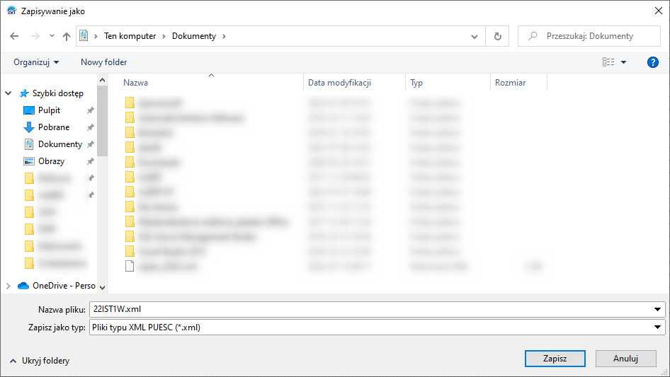 2. Wskazać lokalizację eksportu i nazwę pliku, a następnie zapisać.