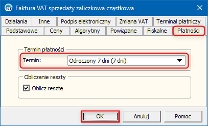 Subiekt GT – Jak ustawić domyślny termin płatności faktury VAT sprzedaży zaliczkowej cząstkowej?