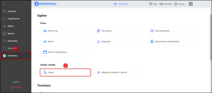 1. Przejść do modułu Ustawienia – Usługi.