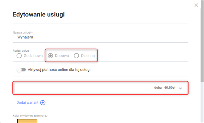 2. Dodać usługę lub skorzystać z opcji edycji istniejącej.