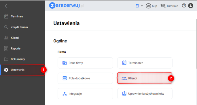 1. Przejść do menu Ustawienia – Klienci.