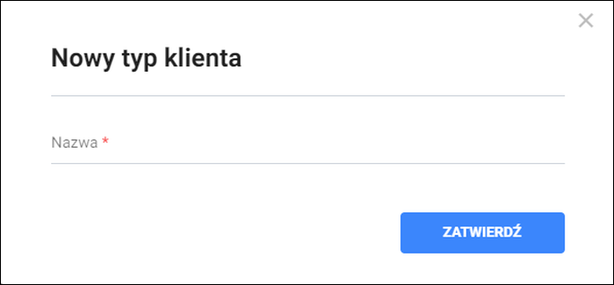 3. W oknie nowego typu klienta uzupełnić pole Nazwa. Zmiany zapisać przyciskiem Zatwierdź.
