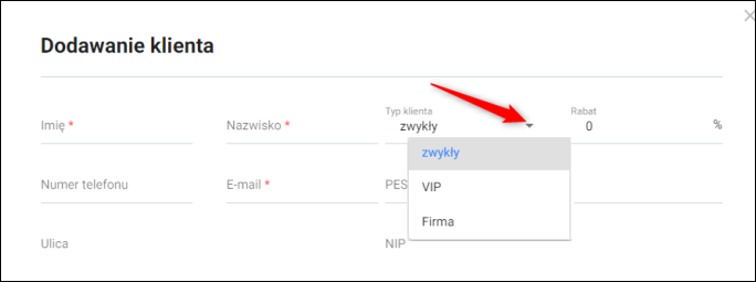 Typ klienta można wykorzystać w formularzu dodawania klienta.
