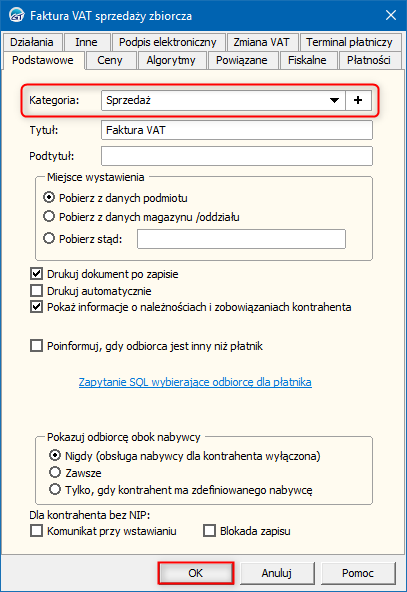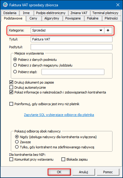 Subiekt GT – Jak ustawić domyślną kategorię faktury VAT sprzedaży zbiorczej?