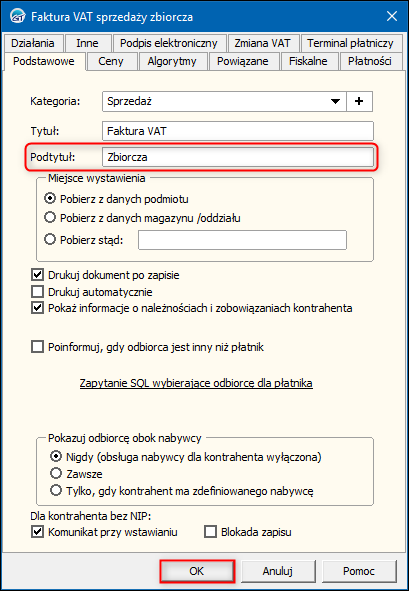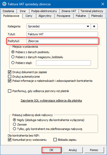 Subiekt GT – Jak ustawić domyślny podtytuł faktury VAT sprzedaży zbiorczej?