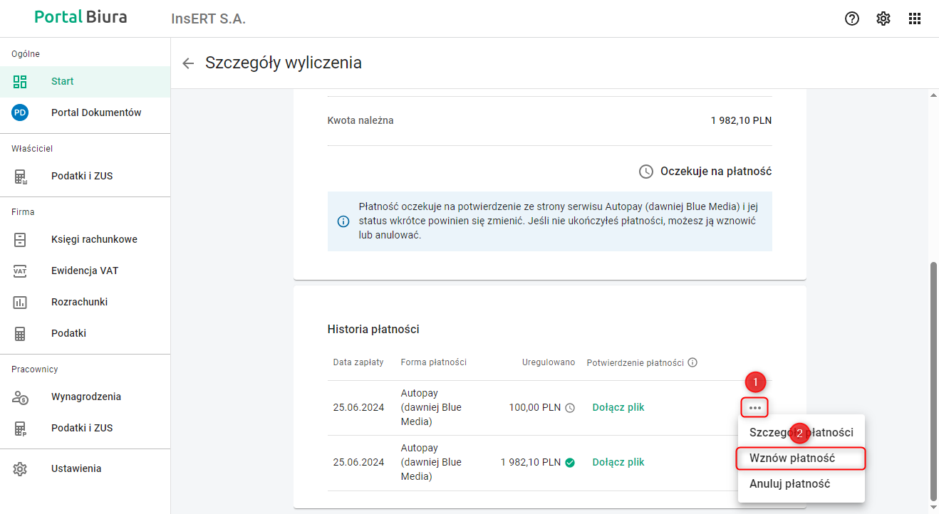 Portal Biura – Jak dokończyć przerwaną płatność online za składki ZUS lub zaliczkę na podatek?