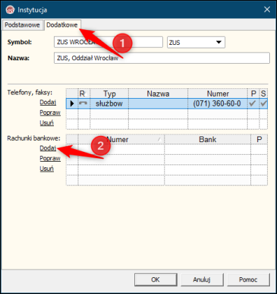 Rachunek, który przeznaczony jest do opłacania składek ZUS, znajduje w się konfiguracji odpowiedniej Instytucji. Aby wprowadzić rachunek składek ZUS, należy: