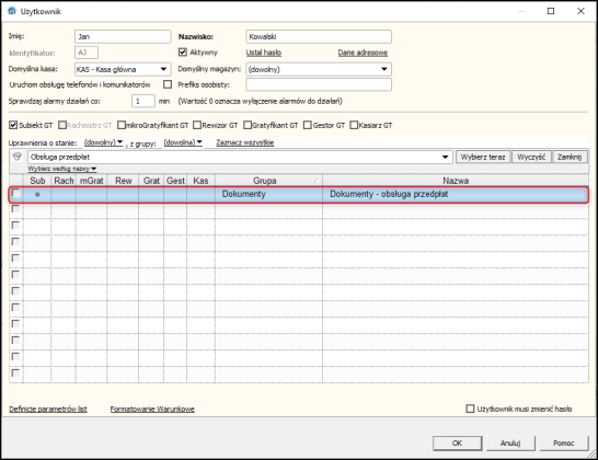 Subiekt GT – Jak zablokować użytkownikowi możliwość obsługi przedpłat na dokumencie?