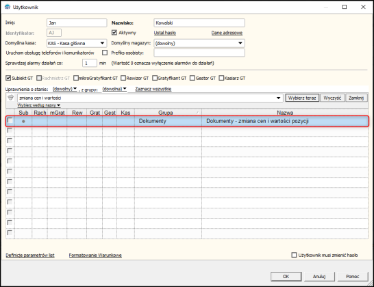 Subiekt GT – Jak zablokować użytkownikowi możliwość zmiany cen i wartości pozycji?