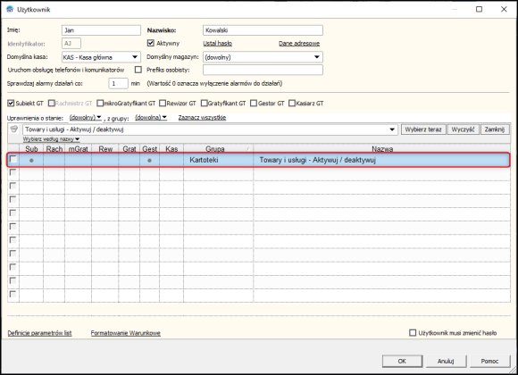 Subiekt GT – Jak zablokować użytkownikowi możliwość aktywacji/dezaktywacji kartoteki asortymentu?