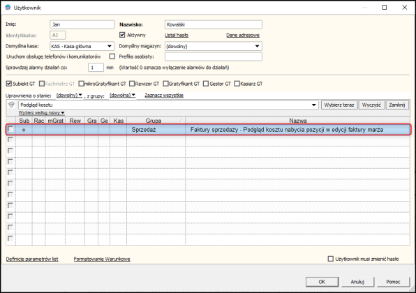 Subiekt GT – Jak zablokować użytkownikowi możliwość podglądu koszty nabycia pozycji?