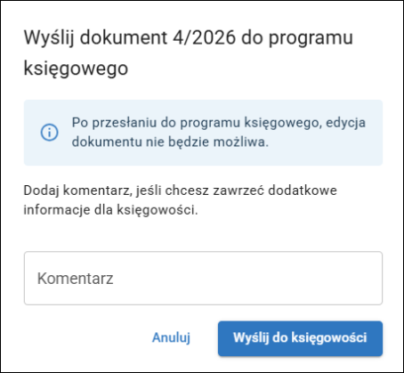 2. Uzupełnić Komentarz i zatwierdzić przyciskiem Wyślij do księgowości.