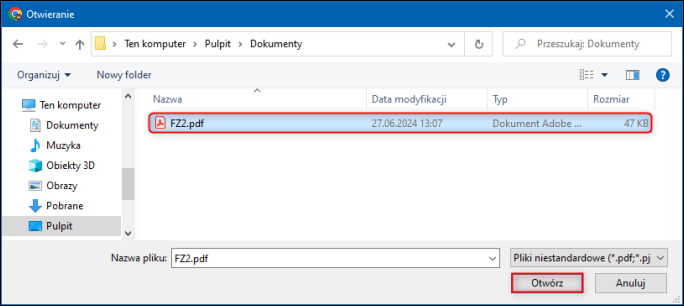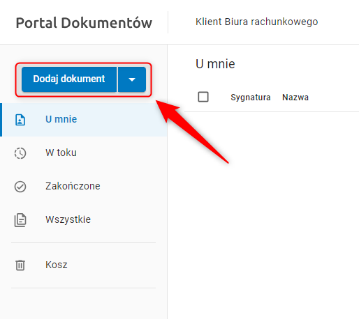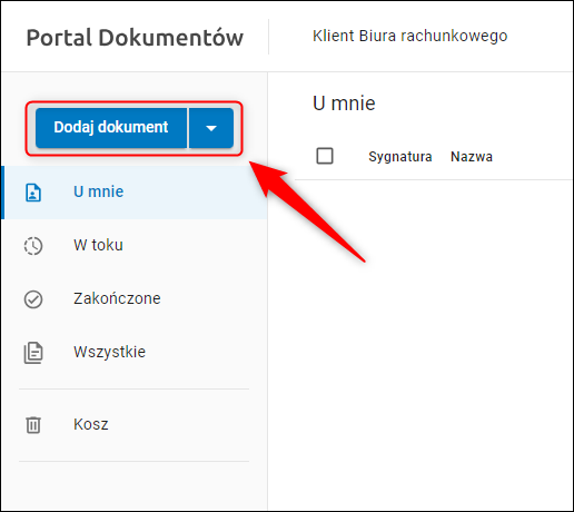 1. W aplikacji Portal dokumentów kliknąć przycisk Dodaj dokument.