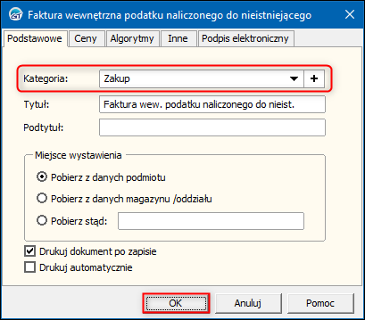 Subiekt GT – Jak ustawić domyślną kategorię faktury wewnętrznej podatku naliczonego do nieistniejącego?